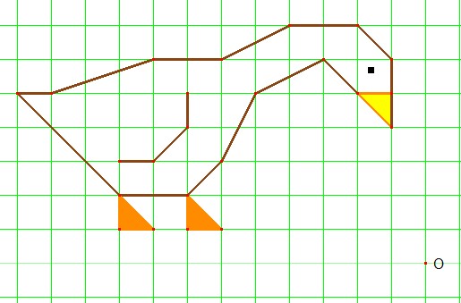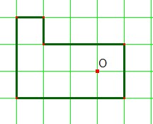 Si abbia questo poligono, il centro di rotazione O, si effettui la rotazione di 90° in senso orario.